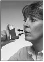2. For å være sikker på at den virker, rist inhalatoren godt, hold munnstykket slik at det peker fra deg og trykk på beholderen for å frigjøre to doser i luften. Det samme bør gjøres dersom du ikke har brukt inhalatoren på 1 uke eller mer.