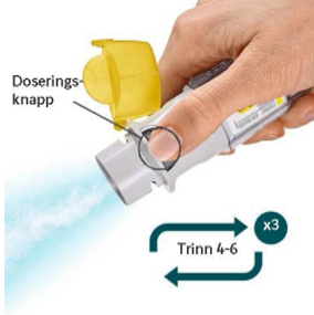 Inhalatoren din er nå klar til bruk og vil levere 60 inhalasjoner (30 doser).