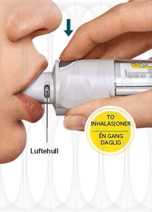 Du behøver bare å bruke denne inhalatoren ÉN GANG DAGLIG. Du skal ta TO INHALASJONER hver gang du bruker den.