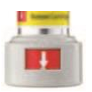 Viser doseindikatoren på patronen en hvit pil på rød bakgrunn? Patronen er brukt opp. Sett inn en ny patron og sett endestykket på plass.