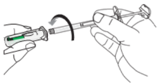 Viktig: Stram sprøyten godt for å unngå lekkasje av legemiddelet.