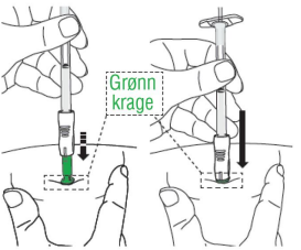 OBS: Les alle instruksjonene nøye før du starter injeksjonen. Injeksjonen gis dypt under huden, og administreringen krever en annen teknikk enn en tradisjonell injeksjon under huden.