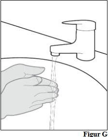a. Vask injeksjonsstedet med en spritserviett, og la det lufttørke i ca. 10 sekunder (se figur I). Dette vil redusere faren for infeksjon.