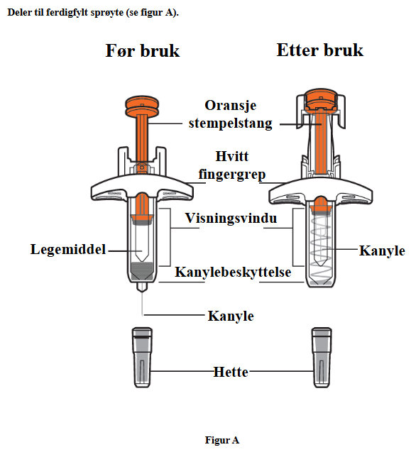Oppbevar den ferdigfylte sprøyten utilgjengelig for barn. Inneholder små deler.