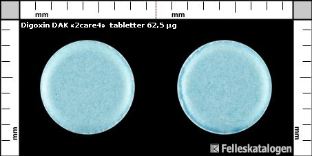 TABLETTER 62,5 μg: Hver tablett inneh.: Digoksin 62,5 µg. Se for øvrig pakningsvedlegget.