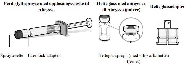 Ved bruk av hetteglass med antigener til Abrysvo (pulver), ferdigfylt sprøyte med oppløsningsvæske og hetteglassadapter