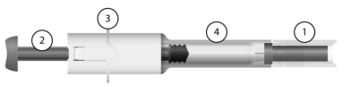 Bilde 3. Sprøyte med manuelt sikkerhetssystem hvor sikkerhetshylsen er trukket over nålen