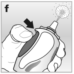 Utløserknappen må trykkes ordentlig inn for å frigjøre dosen gjennom neseapplikatoren - se bilde c.