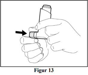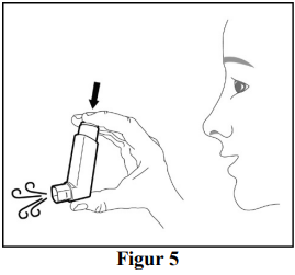 Gjenta klargjøringstrinnene 3 ganger til (se figur 4 og figur 5). Rist inhalatoren godt før hver klargjøringsdose.
