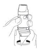 2. Hold Turbuhaler-inhalatoren loddrett med den blå dreieskiven vendt nedover.