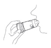 5. Plasser munnstykket forsiktig mellom tennene. Lukk leppene rundt munnstykket. Trekk inn pusten så dypt og kraftig som du klarer gjennom munnen. Ikke tygg eller bit på munnstykket.