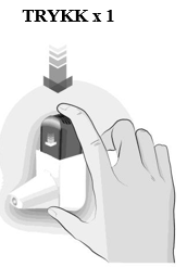 Hvordan tømme pulveret ut av munnstykket Dersom du ved uhell utløser inhalatoren eller du har utløst den mer enn én gang, eller hvis du puster rett inn i den, skal du tømme munnstykket.