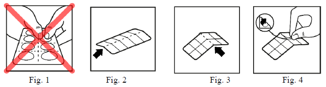 IKKE press tabletten gjennom folien da dette kan skade tabletten (se figur 1)