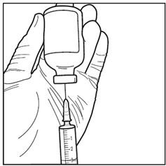 Trinn 6: Trekk opp den rekonstituerte oppløsningen aseptisk med hetteglasset opp-ned og klargjør oppløsningen for infusjon etter ytterligere fortynning.