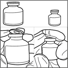 Trinn 2: Trekk ut 3 ml steril fortynningsvæske aseptisk fra hetteglasset med fortynningsvæske ved bruk av en steril sprøyte. Sørg for fullstendig uttrekking (3 ml) av steril fortynningsvæske inn i sprøyten.
