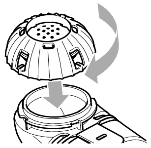 5. Lukk legemiddelbeholderen ved å stille inn styreknastene på legemiddeldekselet med sporene på beholderen. Drei dekselet med ett lett trykk nedover i retning med urviseren helt til det stopper (figur 3b).
