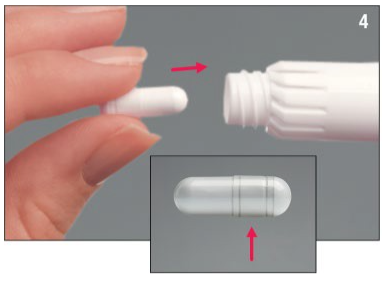3. Fjern en enkelt kapsel fra blisteret. Når du har fjernet kapselen, må den brukes umiddelbart.