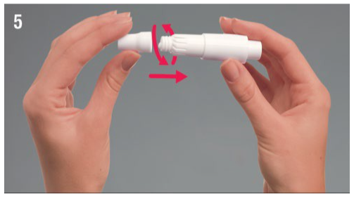 Skru munnstykket fast tilbake på plass, sett hetten på og inhalatoren er klar til bruk med neste dose.