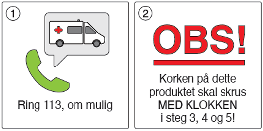 OBS: Dette er motsatt retning av hvordan man normalt åpner en flaske, så vennligst vær ekstra oppmerksom på retningen.