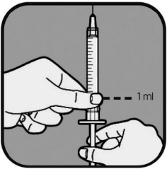Helsepersonell vil vise deg hvilken markering du skal bruke dersom du skal injisere mindre enn 1 ml. Bruk alltid markeringen som tilsvarer din dose. Spør helsepersonell før bruk hvis du er usikker.