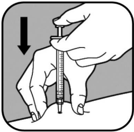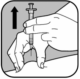 Behold taket i hudfolden. Press stemplet langsomt inn i sprøyten, i løpet av opptil 30 sekunder, til sprøyten er tom. |
