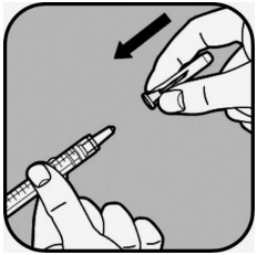 Ta av nålehetten ved å trekke den rett av.