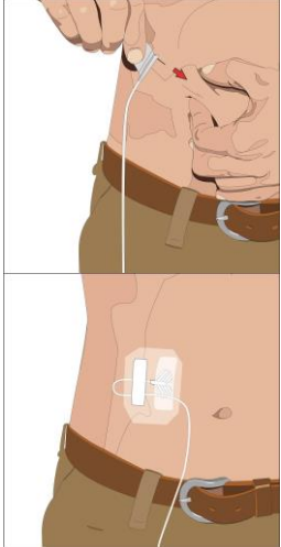 6. Sett inn og sikre nålesettet til subkutan injeksjon: