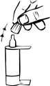 Hvis ingen dråpe kommer, rist forsiktig på flasken for å fjerne eventuelle tiloversblevne dråper fra flasketuppen. I dette tilfelle gjentas trinn 3.