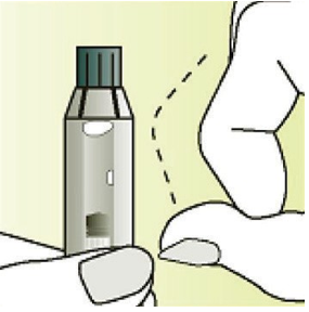 Ta nå sprøyten mellom peke- og langfinger mens den peker oppover