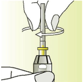 Skru nålebeskytteren (som inneholder nålen) på sprøyten med klokkeretningen
