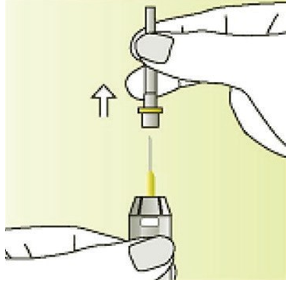 Fjern nålebeskytteren ved å dra den rett opp og kast den