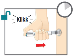 Fortsett å holde den klare bunnen fast mot huden. Du vil høre et andre klikk omtrent 5 til 10 sekunder etter det første. Dette andre klikket sier fra om at injeksjonen er fullført.