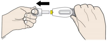Trekk den hvite hetten rett av like før injeksjonen.