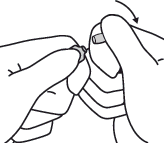 Hold hetteglasset mellom tommelen og pekefingeren, slik at hetteglasstuppen er fri.