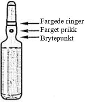 Hold tommelen over prikken og knekk av halsen på ampullen med en skarp bevegelse. Hold godt i bunnen av hetteglasset med den andre hånden.