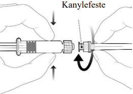 Fest kanylen til sprøyten ved å koble den til luer-lock adapteret og drei en kvart omdreining med klokken til du kjenner at den låses.