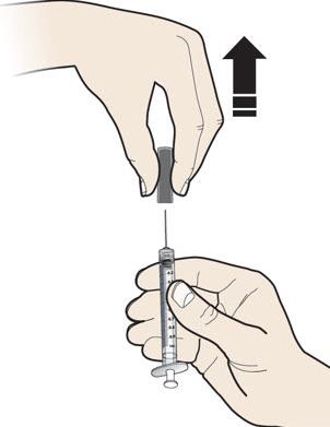 Dette legemiddelet er oppbevart i en sprøyte med en tynn nål. Hold den forhåndsutfylte sprøyten i midten av glassbeholderen mens du tar den ut av brettet for å unngå å bøye eller skade nålen.