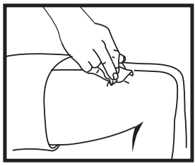 Fjern nålebeskyttelsen. Knip sammen et stort hudområde mellom tommel og pekefinger. Sett inn nålen innerst i den sammenknepne huden med en vinkel på 45° mot hudoverflaten. Varier injeksjonsstedet for hver injeksjon.