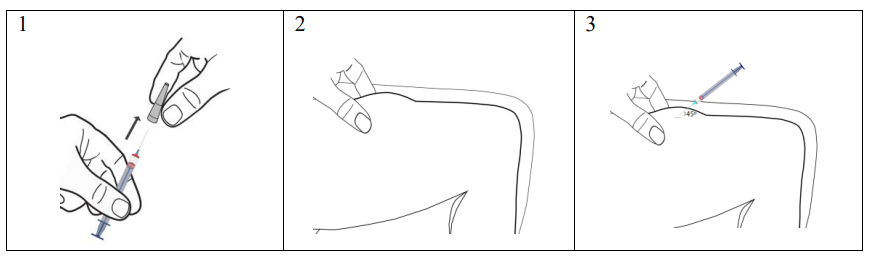 Trekk sprøyten raskt ut og trykk en bomullsdott med desinfeksjonsmiddel mot injeksjonsstedet. Den ferdigfylte sprøyten skal bare brukes en gang.