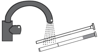 Trekk stemplet ut av sprøyten. Skyll både sprøyte og stempel godt med varmt, rent vann slik at de kan gjenbrukes ved neste påføring.
