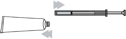 3. Klem på tuben for å fylle applikatoren med gelen opp til fyllingsmerket. Stempelet vil stoppe ved merket.