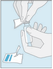 Rengjør toppen av Hepcludex-hetteglasset igjen med en ny alkoholserviett.