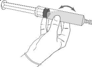 1. Fest sprøytestempelet til gummiproppen i sprøyten ved å skru stempelet med klokka til det stopper.