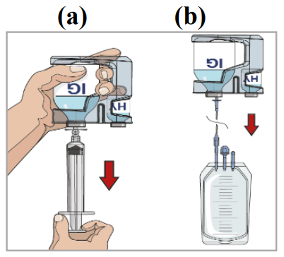 HyQvia er en enhet med to hetteglass som inneholder: