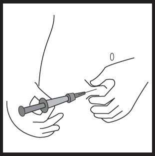 Hold sprøyten i den ene hånden mellom to fingre, med tommelen mot bunnen av stemplet.