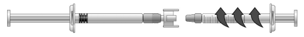 2) Skru adapteren på den ferdigfylte sprøyten.