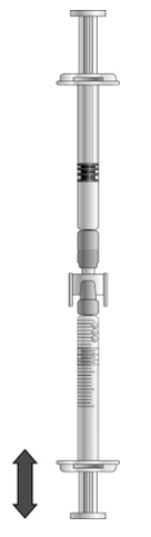 Snu de sammenkoblede sprøytene, slik at den ferdigfylte sprøyten kommer øverst (se illustrasjonen nedenfor).