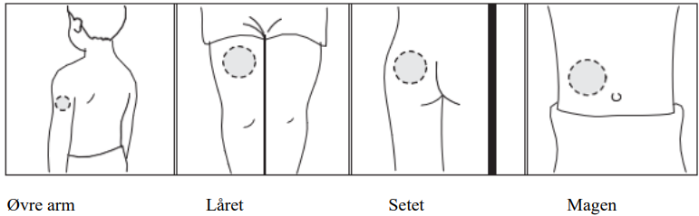 1. Bestem deg for injeksjonsområdet - øvre arm, låret, setet eller magen (se under). Injeksjonsstedet bør endres for hver injeksjon (variér injeksjonsstedet). Dette gjøres for å unngå dannelse av en klump med fettvev under huden din (lipohypertrofi) som følge av gjentatte injeksjoner på samme sted.