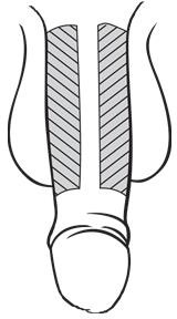 4. Vær sikker på at du ikke injiserer inn i urinrøret eller inn i synlige blodårer. Injiser i de grå områdene som vist på figuren.
