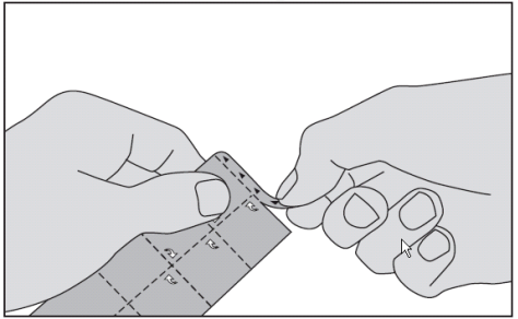 2. Riv av en rute fra pakningen langs perforeringen.
